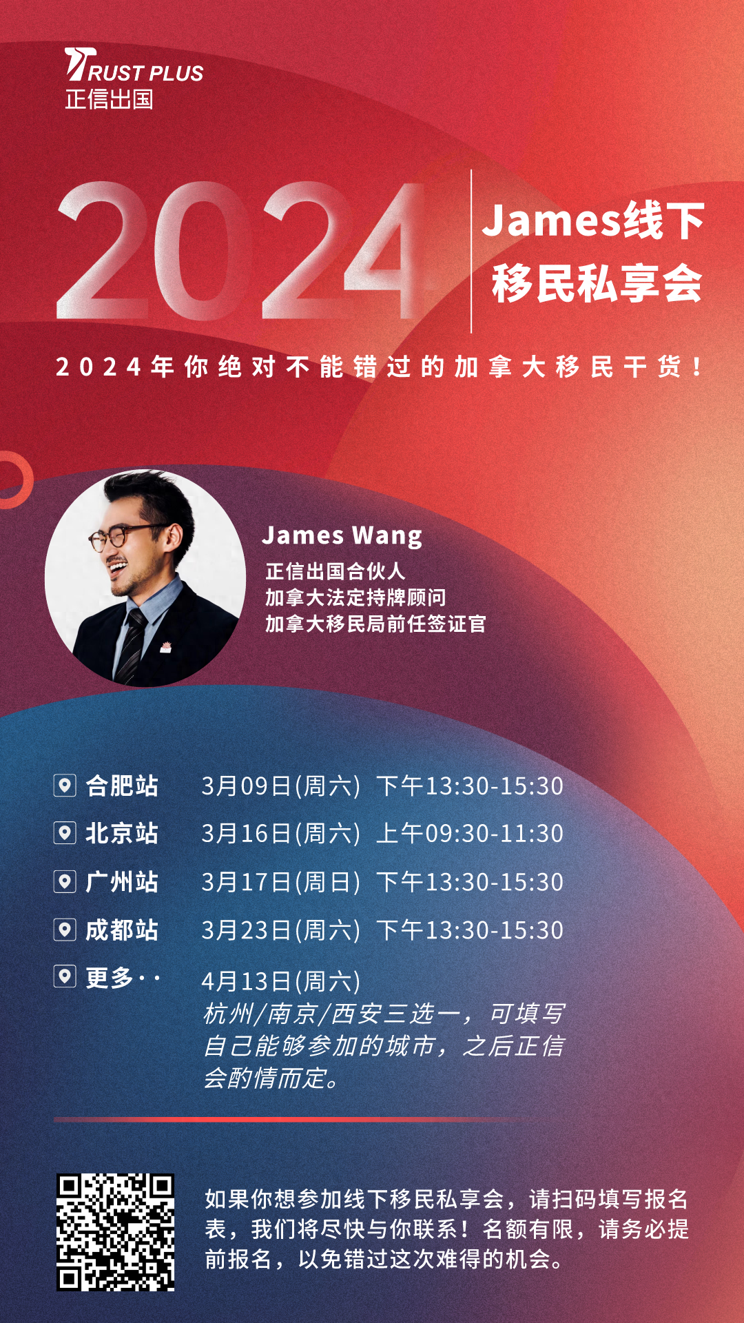 2024年James线下移民私享会,你绝对不能错过的加拿大移民干货!